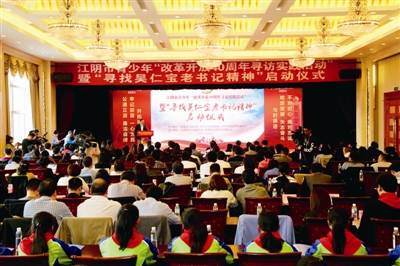 3月29日,江阴市青少年“改革开放40周年寻访实践活动”暨“寻找吴仁宝老书记精神”启动仪式在华西举行。华西村党委书记吴协恩出席活动,向全市青年深情寄语,并向青年代表赠送了《信仰》一书。
