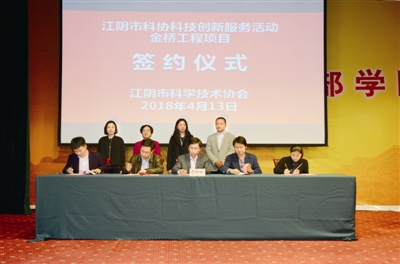 4月13日,江阴市科学技术协会同江苏节能装备有限公司在华西签订“金桥工程”项目协议。