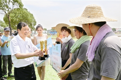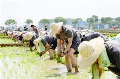 6月2日,华西村在高品质稻米生产基地举办以“不忘初心,稻亦有道”为主题的“首届插秧节”,来自华西各行各业的90名青年代表和100名金科业主,与25名专业选手同插秧机进行比拼。华西村党委吴协恩书记表示,成熟的稻子会弯腰,稻亦有道的“道”,就是告诉年轻人学会弯腰。弯得下腰,才能挑得了担,才能利得了他,才能抬得了头。