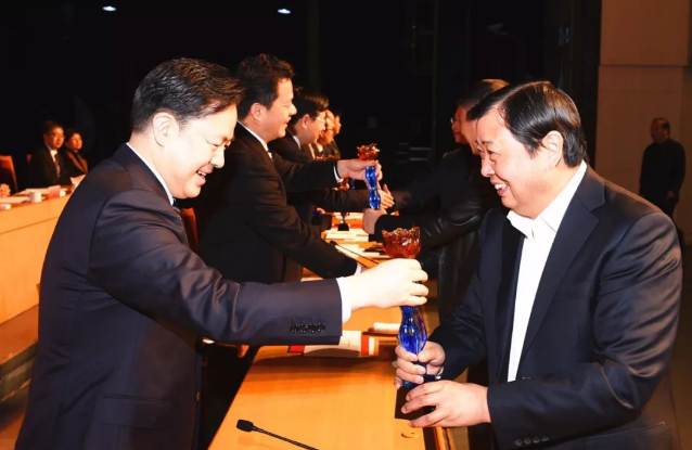 荣获全市“优秀企业家”光荣称号的党的十九大代表、华西村党委书记吴协恩,与全市各类先进代表欢聚一堂,共同分享收获的喜悦,共同展望美好的未来——