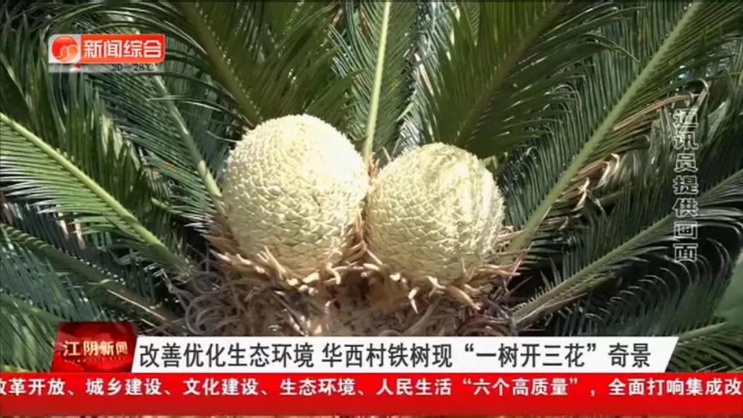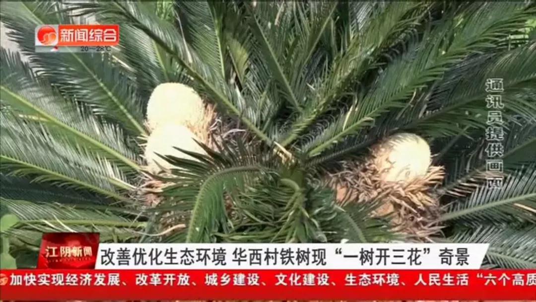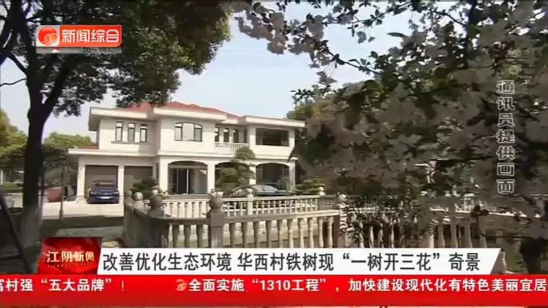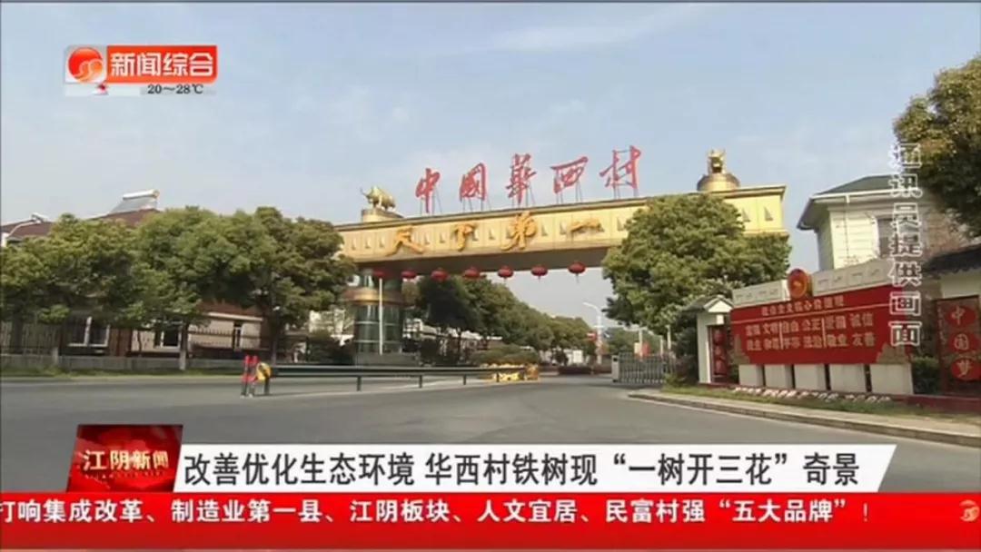 6月11日晚上,《江阴新闻》在播出题为《改善优化生态环境,华西村铁树现“一树开三花”奇景》的报道中称:一直以来,华西就十分注重生态保护,早在2001年,在全国村级单位中,华西第一家通过了ISO14001国际环境质量管理体系认证,被评定为人与自然和谐相处的国家级生态村!